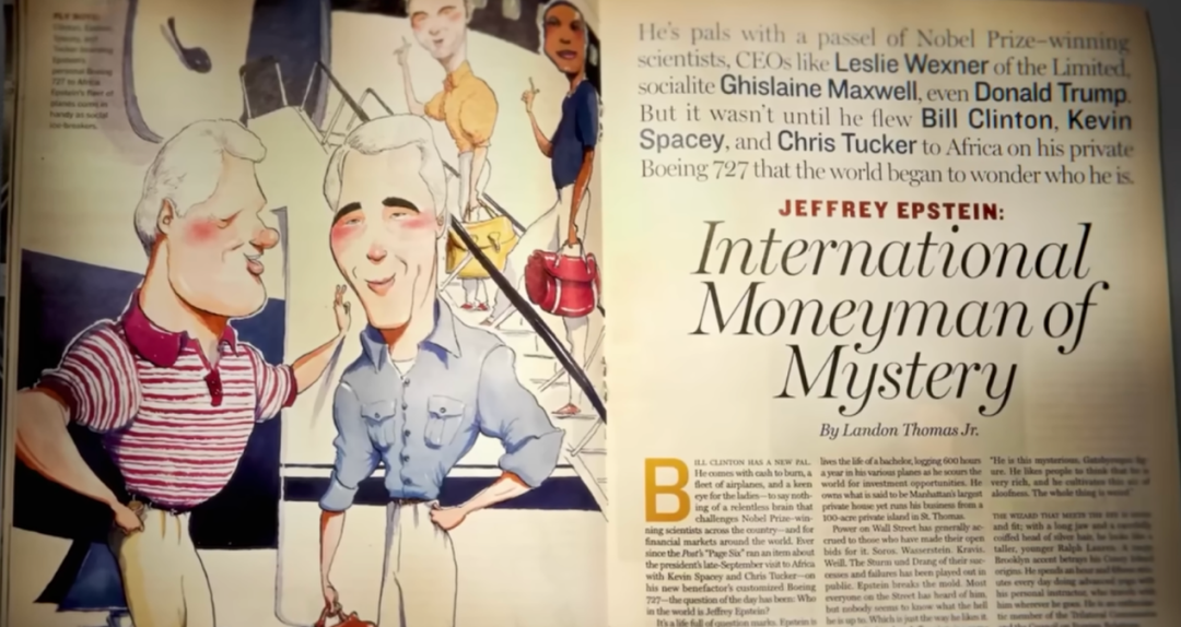 2002-03年左右,《名利场》记者薇奇·沃德在看到克林顿与他的照片后,计划出一篇爱泼斯坦的人物稿。
