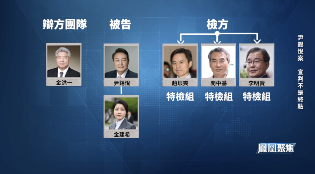 公诉方则是被分为三组的特别检察组。分别由总统李在明任命的特别检察官前监查院代院长赵垠奭、前首尔中央地方法院院长闵中基、前国防部检察团高等检察部长李明贤负责。
