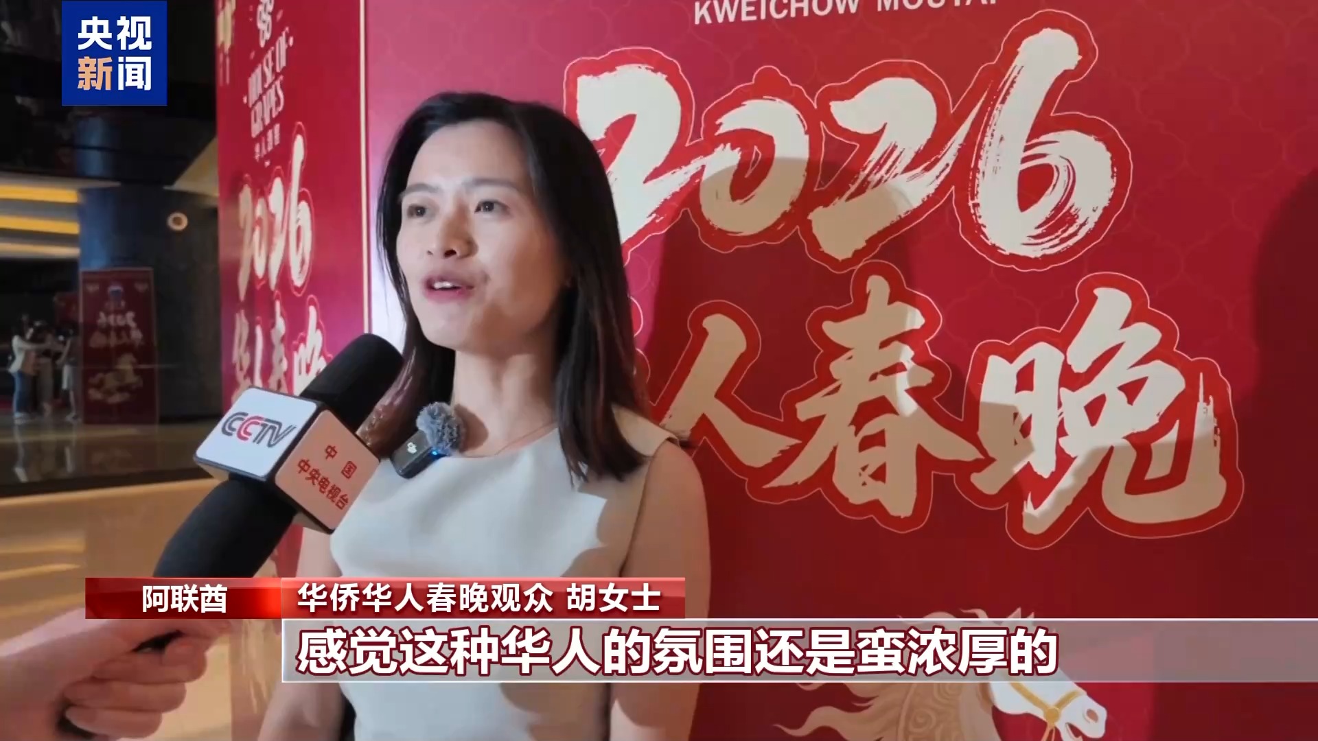 华侨华人春晚观众 胡女士:感觉这种华人的氛围还是蛮浓厚的,我觉得现场的节目也很丰富多彩,也能感受到大家对祖国的这种热爱。