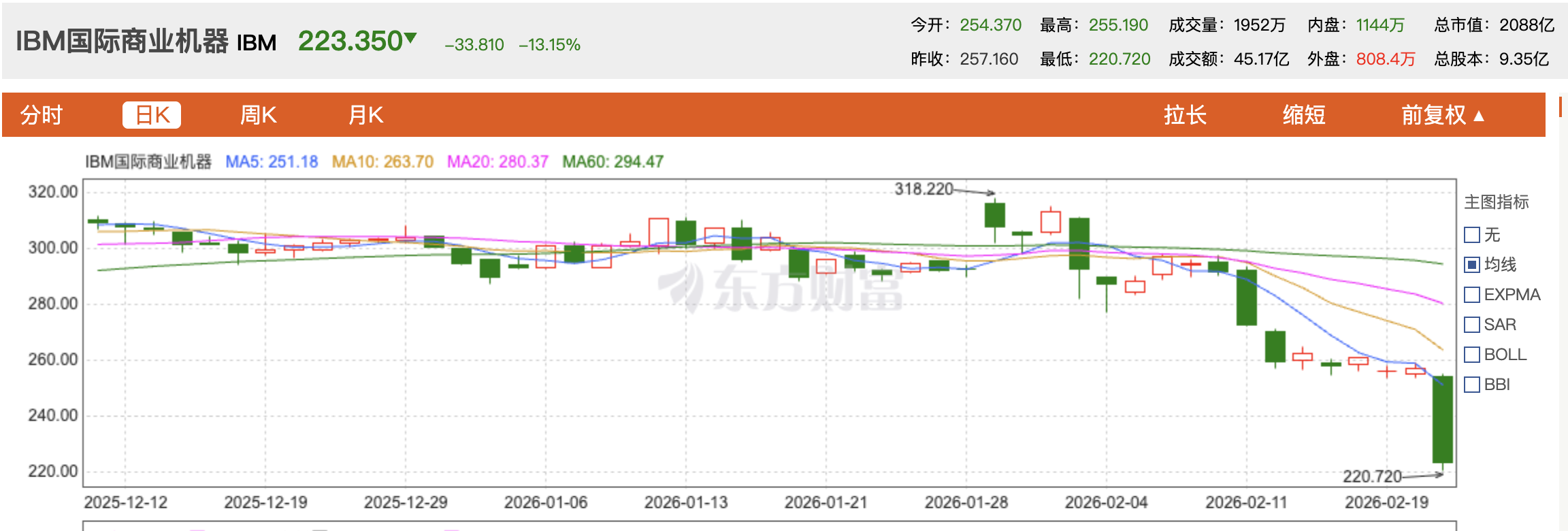 AI摘要:美东时间2月23日,IBM股价收盘暴跌超13%,创下其逾25年来最惨烈的单日跌幅。但就在2月24日,剧情有了新的变化。软件股震荡