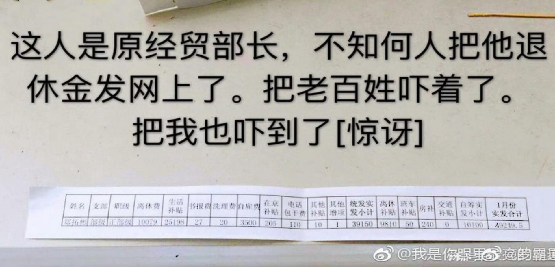 当普通老人为了几百元养老金发愁时,部级离休金近五万的数字,确实——把百姓吓着了。