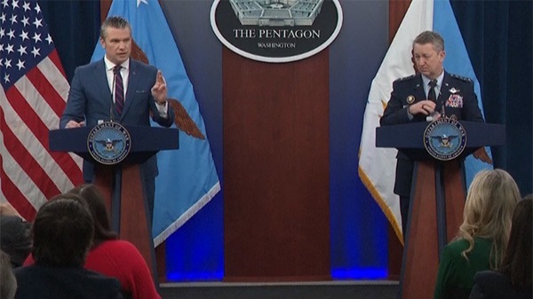 美国国防部长赫格塞思和参谋长联席会议主席凯恩举行新闻发布会 视频截图