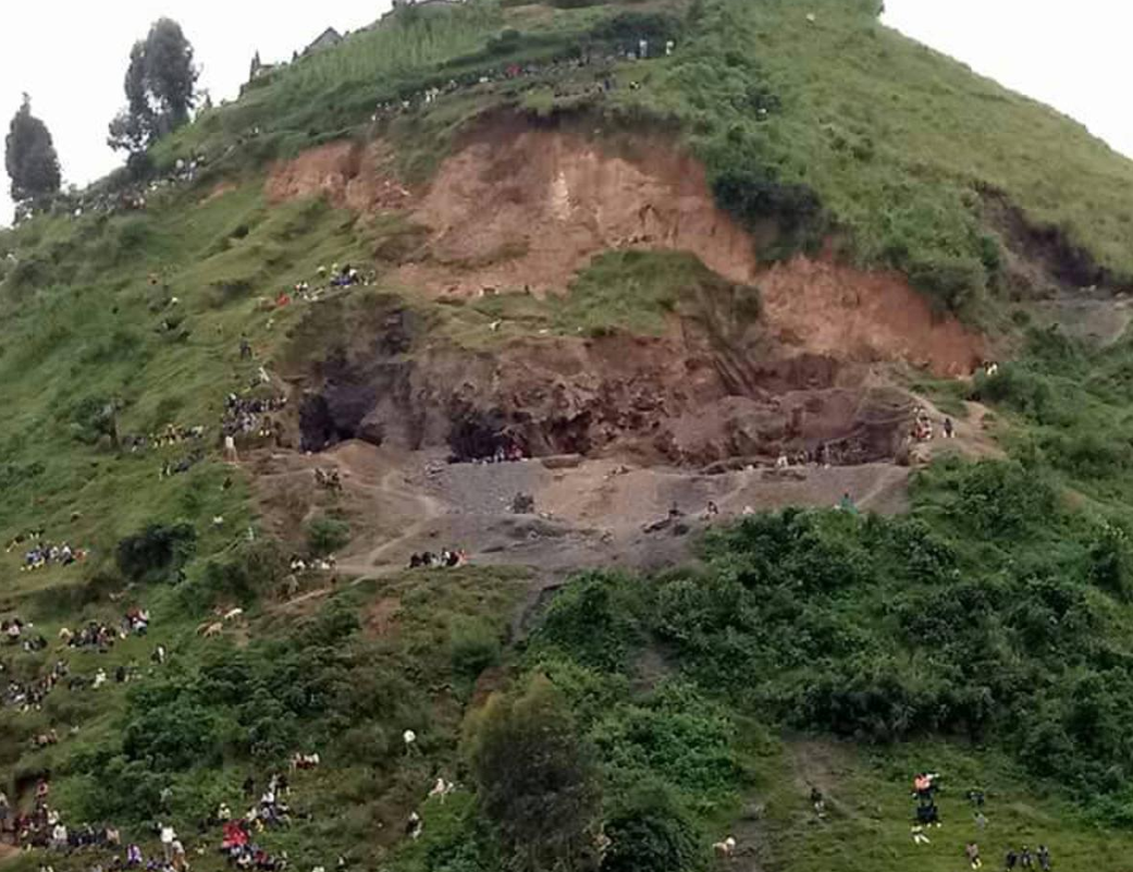 目前该矿区为刚反政府武装M23占据,因惧怕刚政府军空袭,所以M23控制该矿区后没有进行现代化机械采矿,当地居民通过手工挖掘矿石换取收入。滑坡当日该矿区没有降雨。当日下午3时30分左右,矿区发生滑坡,数百人被掩埋,被掩埋者除挖矿人员外还有附近售卖饮料、食品以及工具的商贩。目前伤亡人数仍在统计中。