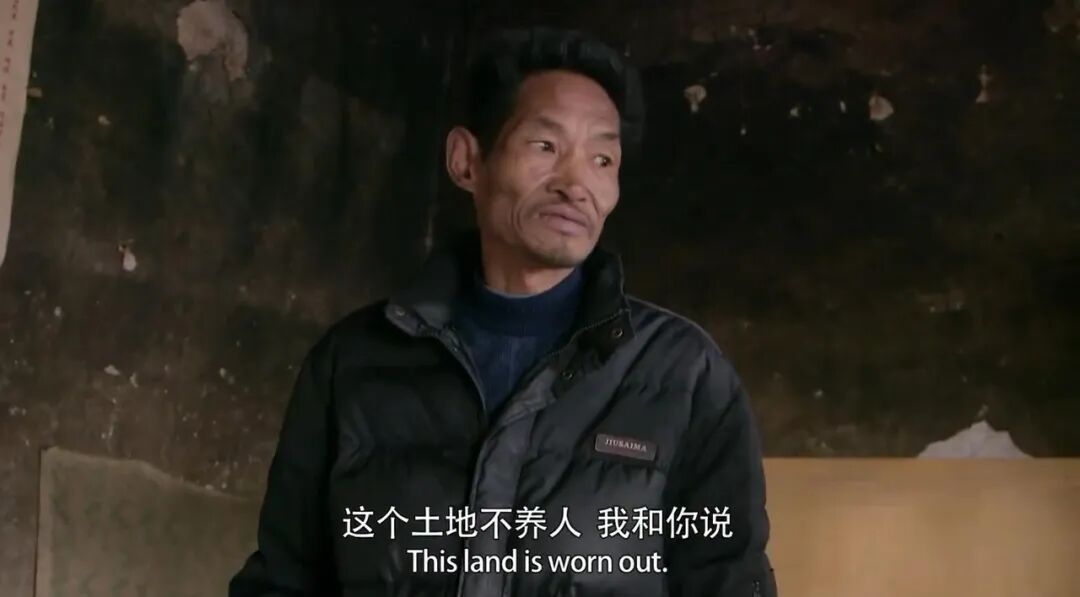 在纪录片《乡村里的中国》里,七十多岁的农民杜深忠对儿子说:“实际上我对这土地一开始就没有一点感情,咱就是没有办法,无奈。”