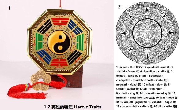 1.2-3 文化入门 Introduction to Cultures 世界上多数文化建立在上帝造人的传说之上。图1是中华文化中的八卦牌。中心的黑鱼代表金童(即亚当,参见9.9 《上帝的三和合》),白鱼代表玉女(即夏娃)。金童是图像思维型人,人群中占比35%。玉女是语音思维型人,人群中占比25%。第三种类型是图像和语音混合思维型人,人群中约占40%。运动思维型人在人群中的占比少于1%,而古代的英雄就出在这类人中。运动思维型人群中图像思维型和语音思维型被称为女婴和男婴,代表着八卦牌中两条鱼的眼睛。古人从本书女娲造人的过程中选出了64个自然法的经典案例,排列在了两条鱼的周围,就形成了代表中华文明的八卦牌。 图2是墨西哥的太阳石历,原理和八卦牌类似。他们是选出了上帝造人过程中的20个经典案例,分布在太阳神的周围,就形成了太阳石历(参见14.4《太阳石历》)。 本书中有三对儿金童和玉女的故事:(1)张三郎(玉皇大帝)和有巢氏(西王母);(2)女娲(白帝)和伏羲(燃灯佛);(3)夏娃(顺皇)和大禹(即禹皇)。 本书中有两对儿男婴和女婴,分别是武大郎和潘金莲,武二郎和熬忖(即尧皇)。 1.2-4 武大郎问:“我的什么特质是将军的特质?” 老张公忽然向路边的几个孩子喊:“你们都过来,谁能爬到这棵树的第三个树杈,我就给他买一串糖葫芦。” 几个孩子很快就爬上了树,下来后得到了糖葫芦。老张公问武大郎:“你能爬上去不?” 他很快就爬到了树顶,下来后也分到了糖葫芦。有几个孩子试过了,但爬不上去。老张公问他们:“你们不想要糖葫芦吗?为什么不爬上去?” 那几个孩子都回答:“想要,但我爬不上去!” 老张公也为他们买了糖葫芦,转头告诉武大郎:“我和你爸爸都像这几个孩子一样,不会爬树!” 1.2-5 老张公(又名邓国公)领着武大郎来到了卖马的市场,对他说:“你爸爸骑驴,你妈妈骑马。” 武大郎立刻反驳道:“不对!我爸爸骑马,那个女人(张夫人,妈祖)骑驴!” “那我们去问问!” 说着,张公领着武大郎问一个人:“你教过的最笨的学骑马的人是谁?” 那人回答:“你儿子礼敬公是其中的一个。我前半辈子总共教过四五个学不会骑马的人!” 老张公又问另外一个人同样的问题,那人回答:“我一共遇见过七位学不会骑马的人,你儿子礼敬公是其中之一!” 老张公对武大郎说:“为了教你爸爸学骑马,我曾经为他请过十多位教骑马的老师。有五位老师,教几天之后就拒绝继续教你爸爸学骑马了!” 这时,很多人围了过来,问:“这孩子是你的孙子吗?他会骑马不?”老张公有礼貌地回答:“他是我儿子礼敬公的儿子!” 老张公来到一匹高头战马的旁边,问马的主人:“我能借用一下你的马不?” 那人回答,当然可以!老张公又问武大郎:“你会骑马不?” 武当郎蹭一下蹦到了马背上,策马扬鞭,像似骑士一样,跑了起来。人们看见他个小,脚没蹬在马蹬子上,而是双腿夹住了马背,像似粘在了马背上一样。回来后,武大郎一勒缰绳,做了个立马扬鞭的姿势。 老张公搂着武大郎问一个曾经放弃教礼敬公的马术老师:“你说我们家的人都学不会骑马,他是我的孙子不?” 那位马术师回答:“他的这个擅长骑马的遗传基因来自他的母亲,张夫人,不是来自你儿子礼敬公。张夫人她们家具有将军血统,祖上出过好几位大将军。” 老张公把武大郎推到了他的面前,问:“我想把他培养成大将军,你看怎么样?” 那位马术师反问:“他会射箭吗?” 老张公问:“谁有弓和箭?” 有人回答:“屋里有,我给你取来!” 战马的主人缩短了链接马镫的绳索。武大郎接过弓和箭后,又飞身上马,一边跑马一边射箭。最后的三箭是转身向后射的,都射中了把心。” 那位马术师对老张公说:“我只是个贩马的,说什么您别在意!” 老张公答:“你随便说!” 马术师说:“他完全继承了他曾外祖父,张大将军的将帅基因。如果他能成为将军,他的功绩会远远超过他的曾外祖父。” 有人说:“他的身材那么小,怎么打仗啊!” 马术师说:“我说如果他能够成为将军,就将是一位伟大的将军,因为大将军打仗靠的是智慧。这孩子完全拥有学习排兵布阵智慧的特质。” 老张公开玩笑说:“我请你做我孙子的马术师,你看怎么样?” 那位马术师问:“他是不是那位把我们这里的相面先生都赶走了的武大郎?”(注,有些相面先生因为辩论中输给了武大郎,丢了面子和生意,所以离开了乾塘关。) 老张公回答:“正是!” 马术师回答:“那我不收他这个徒弟,我在乾塘关混了大半辈子了,不想换地方工作!” 返回《三郎故事》的目录