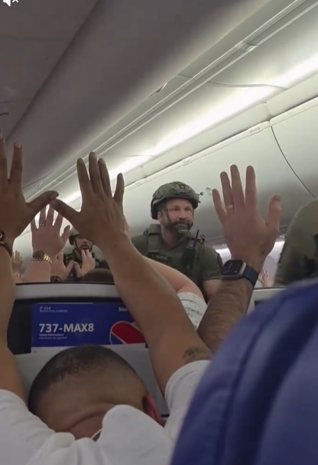 据报道,一架美国西南航空客机当地时间3月6日原计划从田纳西州纳什维尔飞往佛罗里达州劳德代尔堡,中途被迫备降佐治亚州亚特兰大。视频显示,多名全身穿戴战术装备的执法人员沿狭窄过道走向机舱后部,随后将一名男子从座位上拽出并戴上手铐。机上人员(尚不确定是乘客还是机组人员)反复高喊“低头举手”,提醒所有乘客在执法人员行动时避免引发冲突。