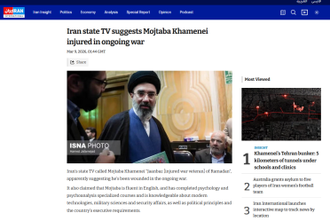 这家媒体称,伊朗国家电视台的主播称小哈梅内伊为“Jaanbaz of Ramadan”,意思是“斋月受伤的老兵”。