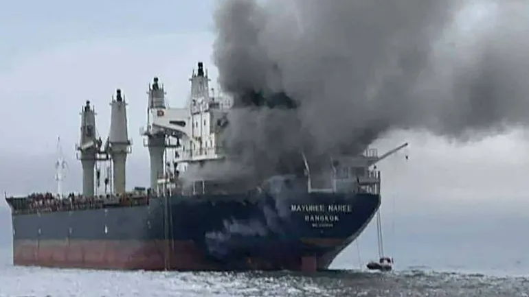 ▲经过霍尔木兹海峡的油轮遭到攻击。(图源:半岛电视台)