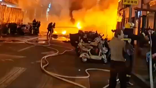 起火建筑物隔壁一家店铺老板唐女士(化姓)向记者介绍,火灾发生时,其妹妹在店里工作,跑到安全地方后给她打了语音电话,称“店隔壁着火了”。