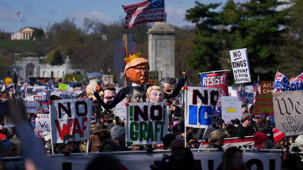 朱锋:“这两天美国几乎1/3的州出现反特朗普的示威游行,而且示威游行者高举的牌子叫‘no king’,就是美国不需要皇帝。这一现象,集中反映出特朗普执政一年两个月多以来,对美国社会造成的深刻分裂,以及针对其个人执政的批评、指责已达到空前高度。