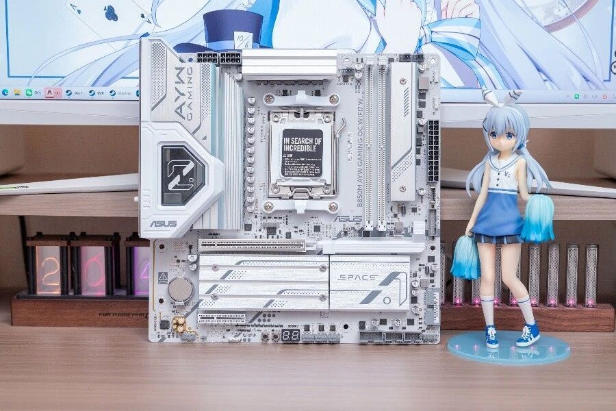 主板我手上合适的只有这张B850 AYW白色了,对内存超频比较友好。