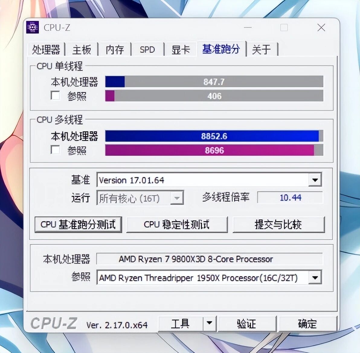 CPU是新买的R7 9800X3D,散片基本上默认是大雷,但是开个PBO2然后-10%的负压一般没问题。
