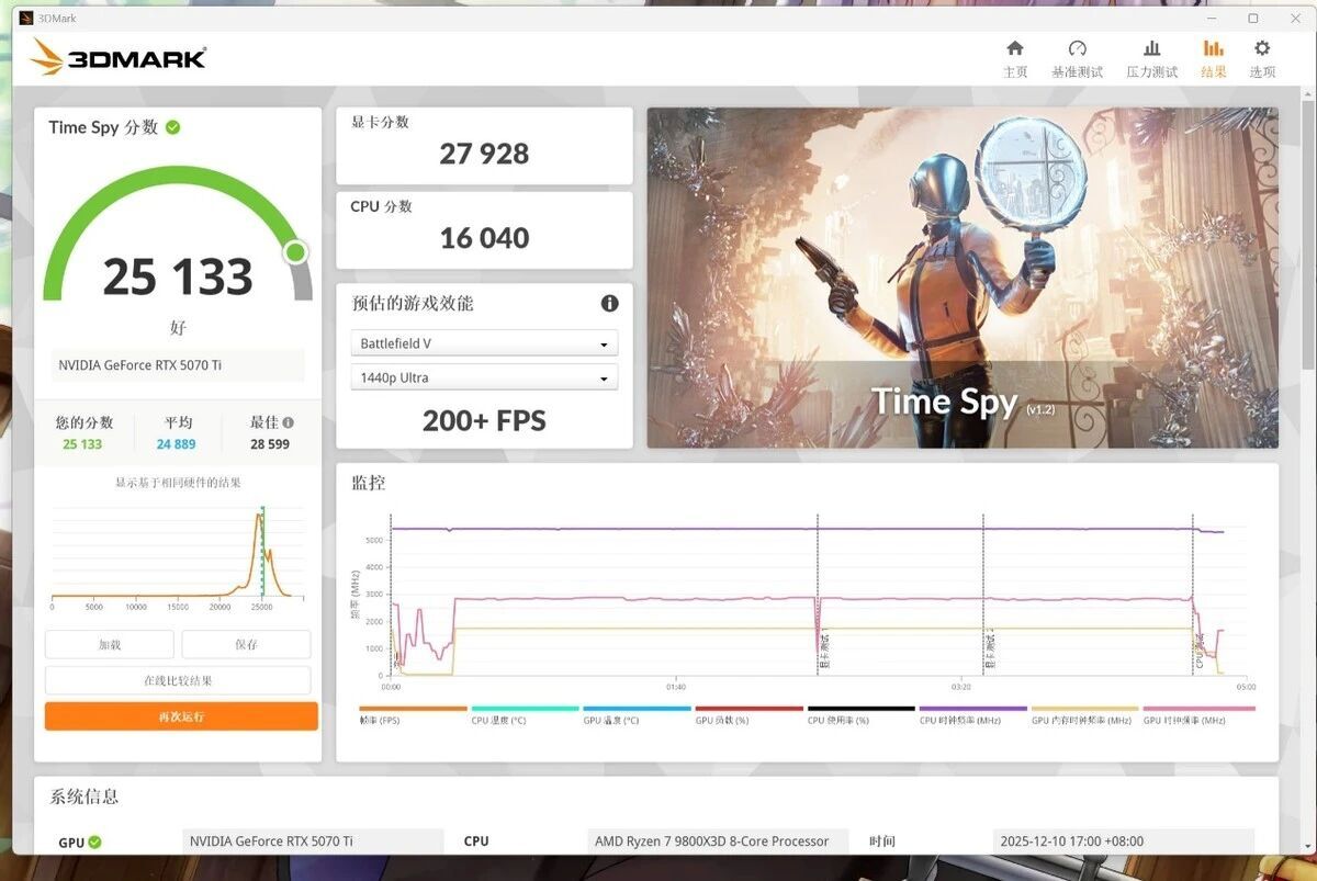 3Dmark TS分数,28000的GPU分数算是5070ti的正常水平。