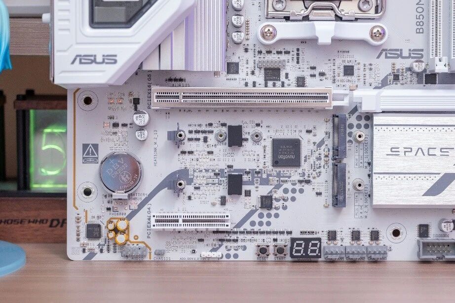 纯白的板子加上白色的插槽,我觉得这个颜值比TUF的那张白色板子强不少。唯一的遗憾就是只有两根内存槽,为了内存超频的代价。