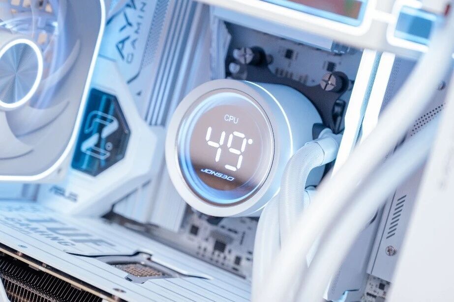 水冷头支持CPU的温度显示,作为一个装饰来说是挺OK的。