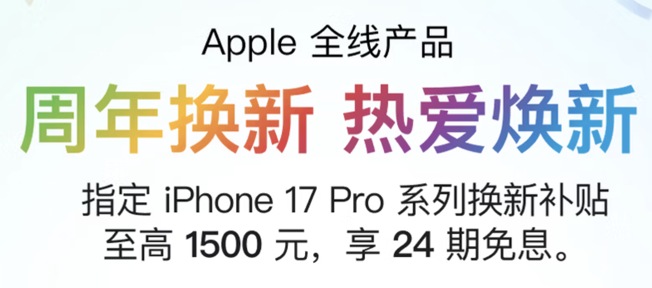 指定iPhone 17系列产品(包括17、17 pro、17 pro max、Air、17e)享限量1000元以旧换新大额券,指定MacBook Air M5电脑享限量1500元以旧换新大额券(旧机需为Windows)