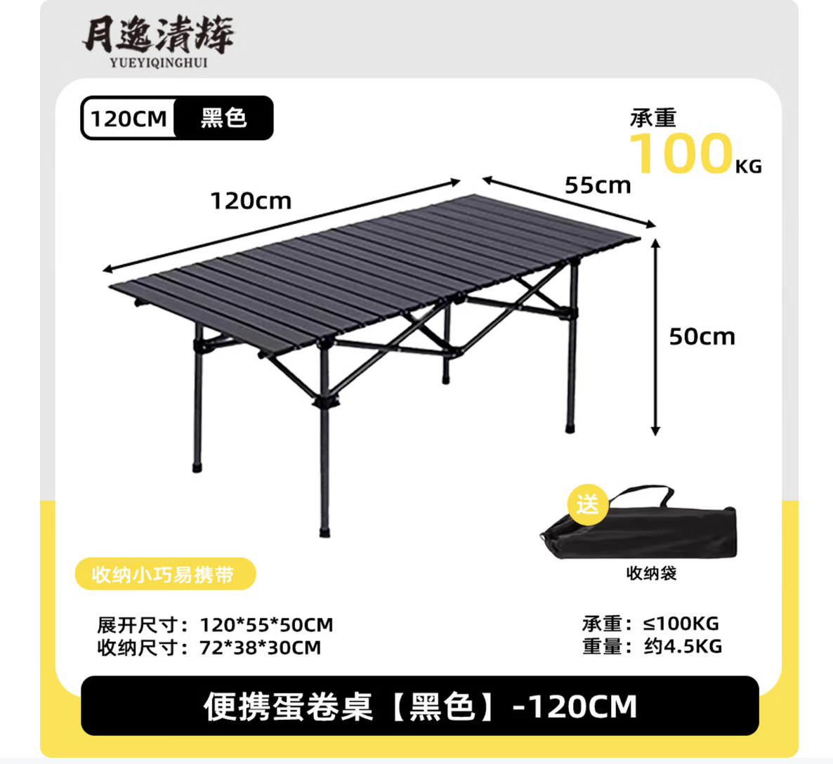 月逸清辉户外桌1.2米长,49.9元