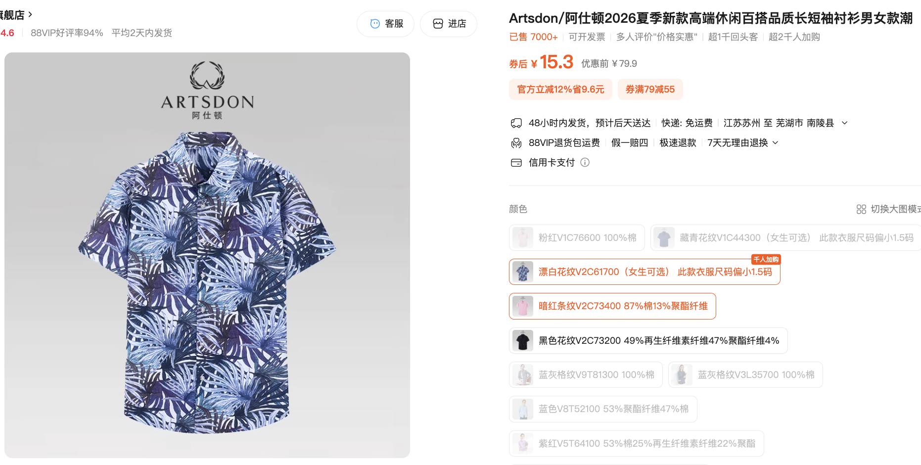 阿仕顿T恤 15.3元一件。