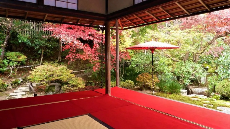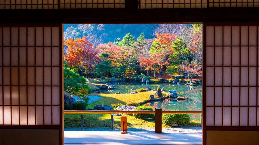 在这里可以欣赏到优雅静谧的日本庭园与层林尽染的山峦相映成趣的风景,以及极具禅意的枯山水庭园与色彩缤纷的秋叶和谐相融的画面等充满日本风情的枫红美景。