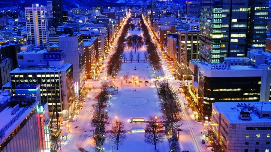 札幌白雪皑皑的美丽夜景