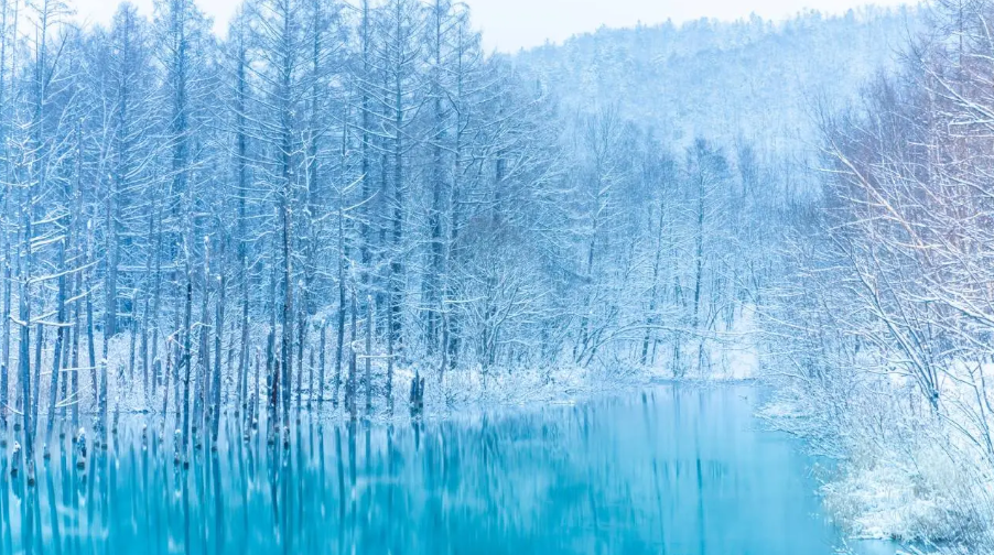 入冬后,皑皑白雪堆积在结冰的湖面上,将周遭渲染成银色的世界。 11月至4月期间还会举办夜间点灯,在灯光衬托下的湛蓝世界更是美得令人动容。