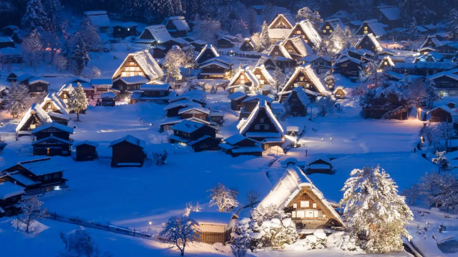 特别是举办「白川乡冬季点灯」期间,白雪覆盖下的合掌村和周围的雪山在灯光映照下美若仙境。