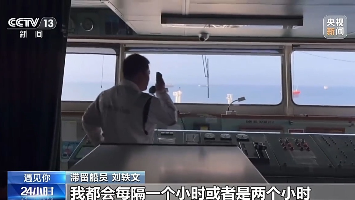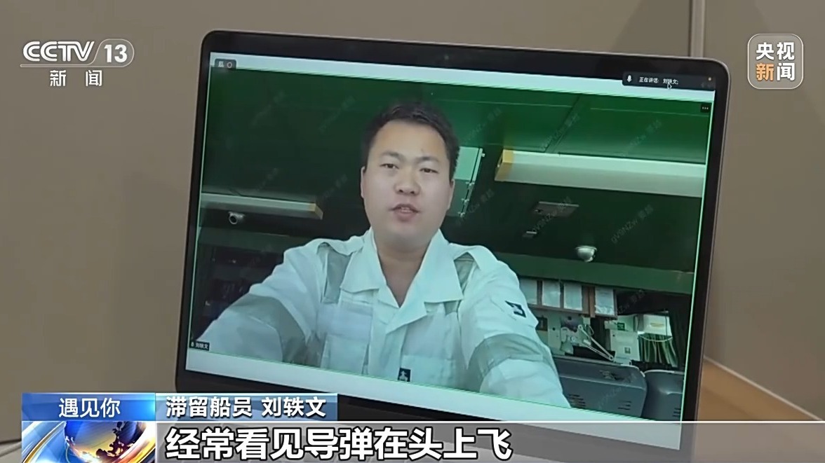 滞留船员 刘轶文:刚开始爆发的时候,我们以为战争可能也是跟之前差不多,很快就结束了,但实际上好像是愈演愈烈。经常看见导弹在头上飞,承受的压力是非常大的。
