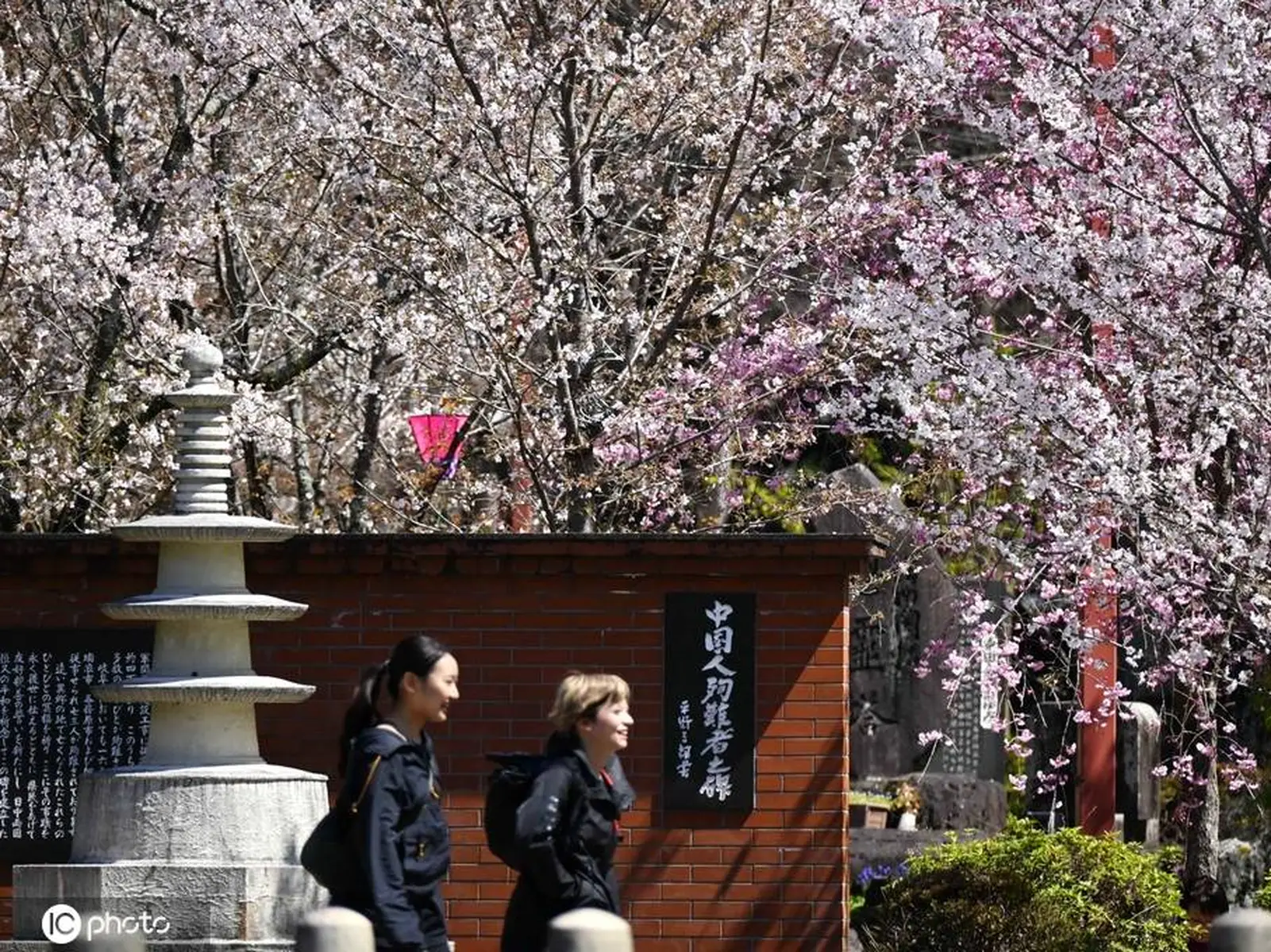 游人漫步其间,仰头是花,低头是影,仿佛置身于中日友谊的静谧诗篇中。