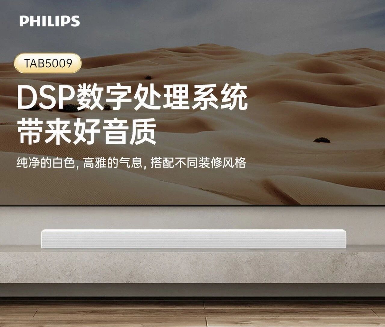 ⑨. 飞利浦 TAB5009 回音壁 长条2.0喇叭 白色 支持蓝牙5.3