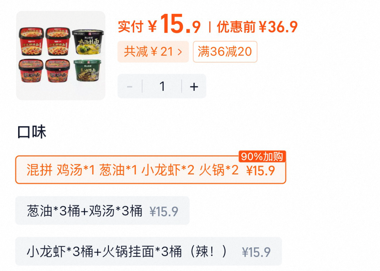 ①. 【天猫】今麦郎1.5倍方便面袋装