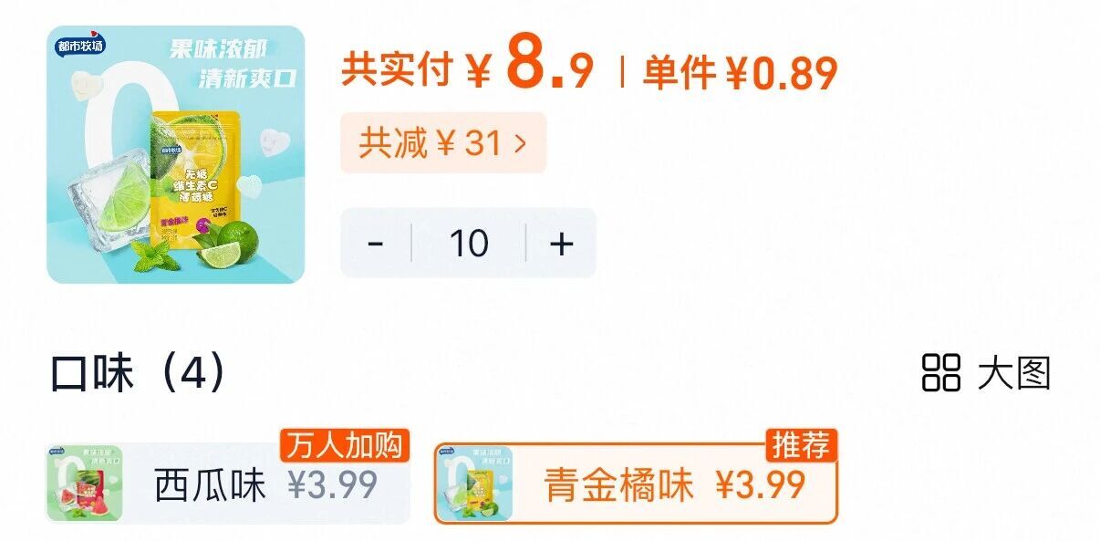 ⑰. 都市牧场无糖薄荷糖清新口气含片柠檬水果润喉小零食口香压片糖果