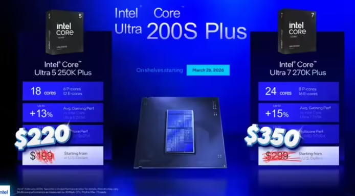 3 月 29 日消息,英特尔最新发布的酷睿 Ultra 5 250K Plus 与酷睿 Ultra 7 270K Plus 已于 3 月 26 日正式上市。