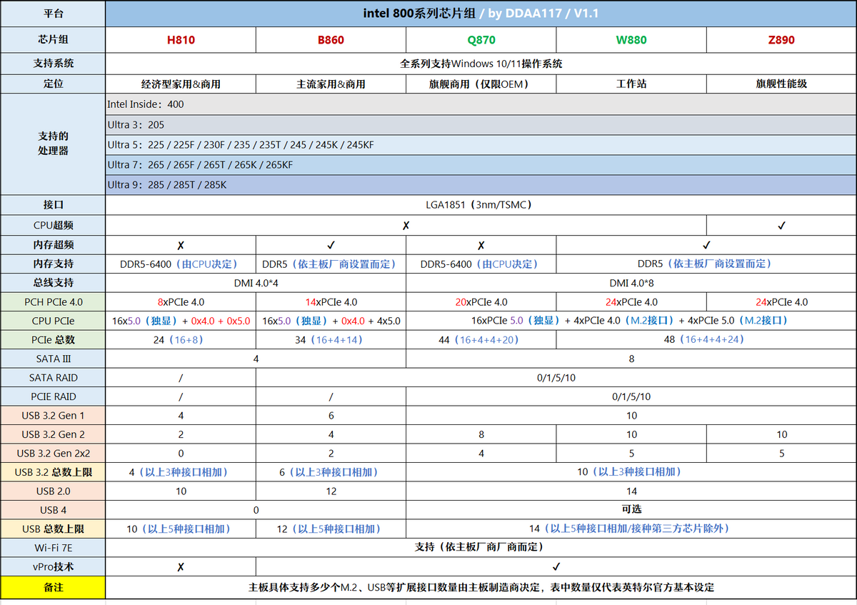 ☞ 从800系列开始,英特尔主板供电从600/700系列的x相(CPU核心)+a相(核显供电)+b相(控制器供电)的形式改成x相(CPU核心供电)+a相(核显供电)+b相(控制器供电)+c相(VNNAON供电)的形式,例如最低端主板从4+1(2)+1相改成现在的4+1(2)+1+1相,所以你不要觉得H810的7(8)相供电很豪华,实际入门,建议带U5-225/230F。
