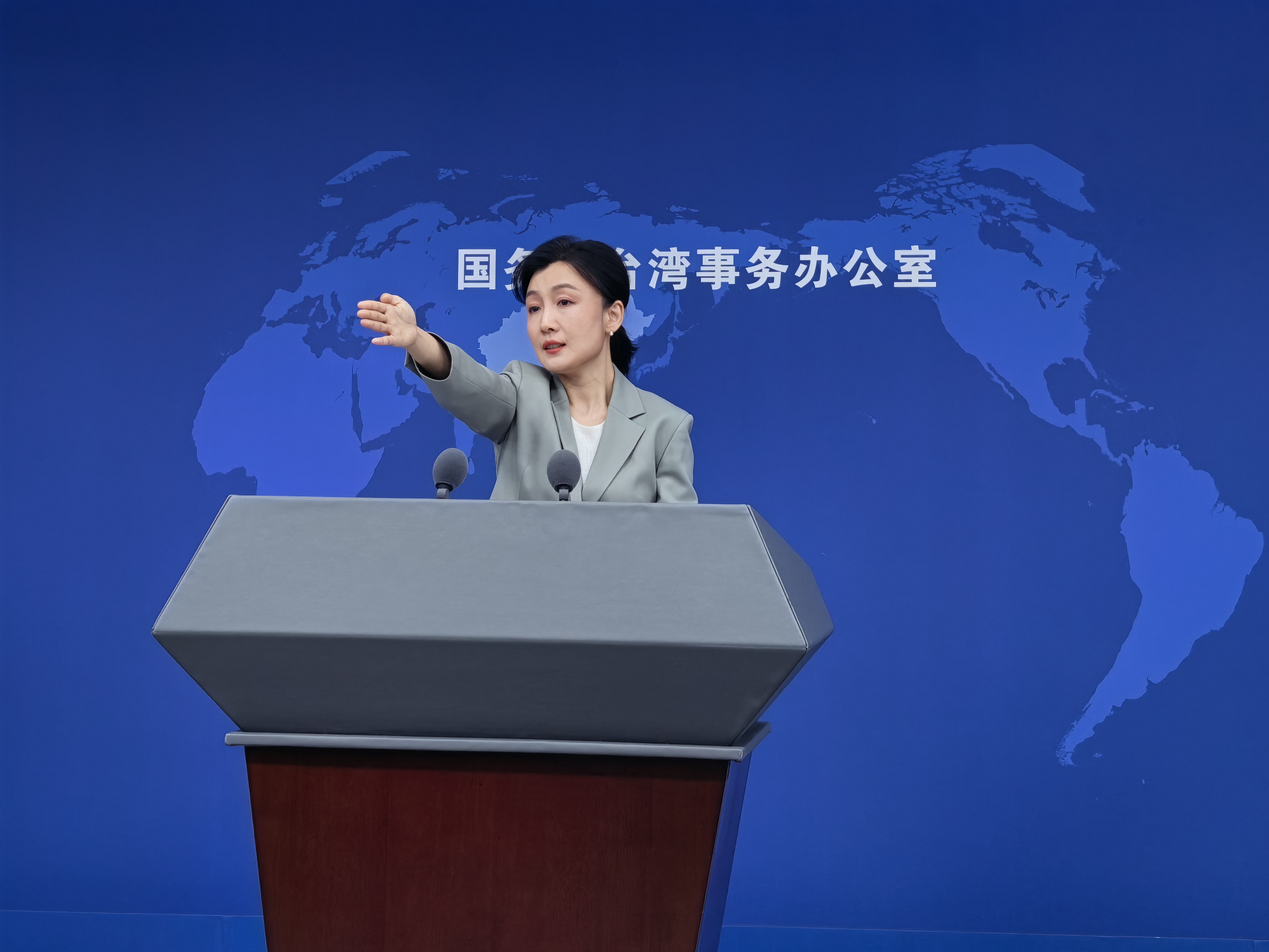 国台办发言人张晗回应说:“我们坚决粉碎一切‘台独’分裂行径和外来干涉、维护国家主权和领土完整的意志坚如磐石,能力越来越强大。”
