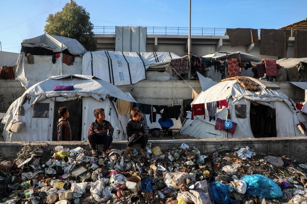 这是2025年12月20日拍摄的暂住在加沙城一处垃圾场附近的巴勒斯坦儿童。新华社发(里泽克·阿卜杜勒贾瓦德摄)