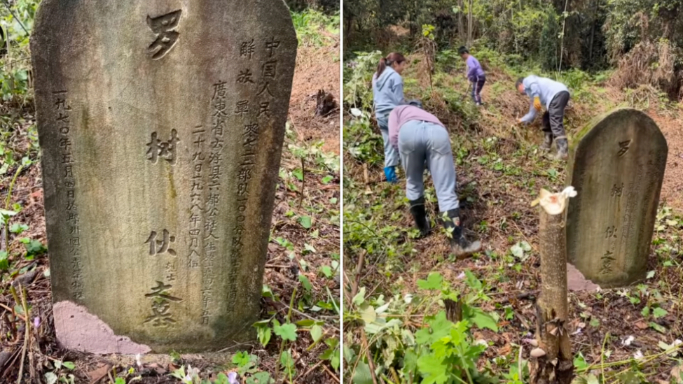 4月4日,湖南郴州,小伙为葬在荒山上的广东籍烈士“罗树伙”寻亲,引发网友关注。