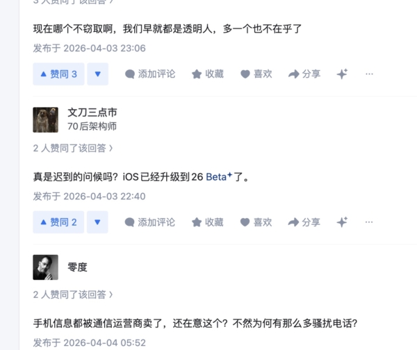 有网友表示,现在苹果手机的系统早就远远超过iOS17,达到26.4了,这个通知没有什么意义,“如果你没有刻意阻止系统更新的话,现在你的iphone系统版本一定是大于iOS17的,目前最新的iOS版本是26.4”。