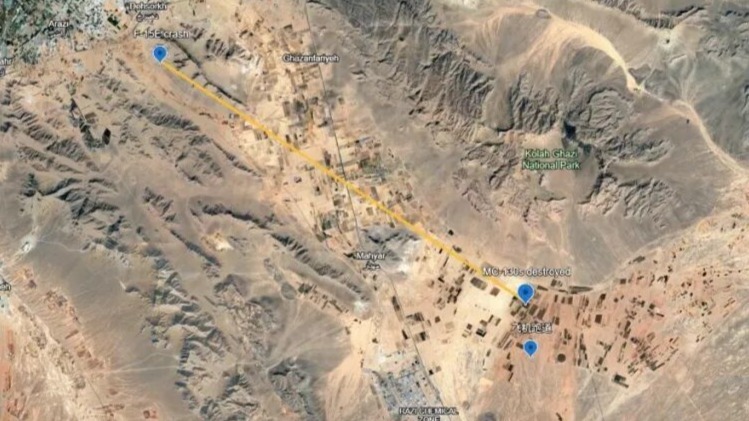 地理定位发现,美军F-15E战机坠毁的地点位于伊斯法罕省南部,靠近伊斯法罕省与科吉卢耶-博韦艾哈迈德省、恰哈马哈勒-巴赫蒂亚里省的三省交界区域,此地距离美军救援飞机残骸分布的地点不足30公里。