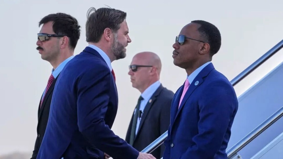 ▲万斯乘坐空军二号启程去伊斯兰堡参加谈判。(图源:路透社)