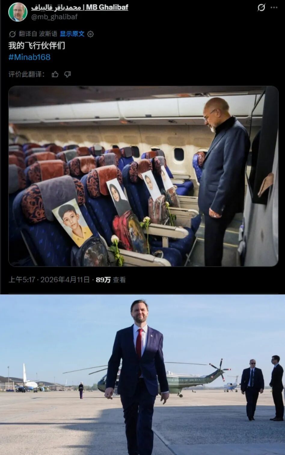 ▲伊朗谈判代表团由议长卡利巴夫率领,美国代表团由副总统万斯率领。