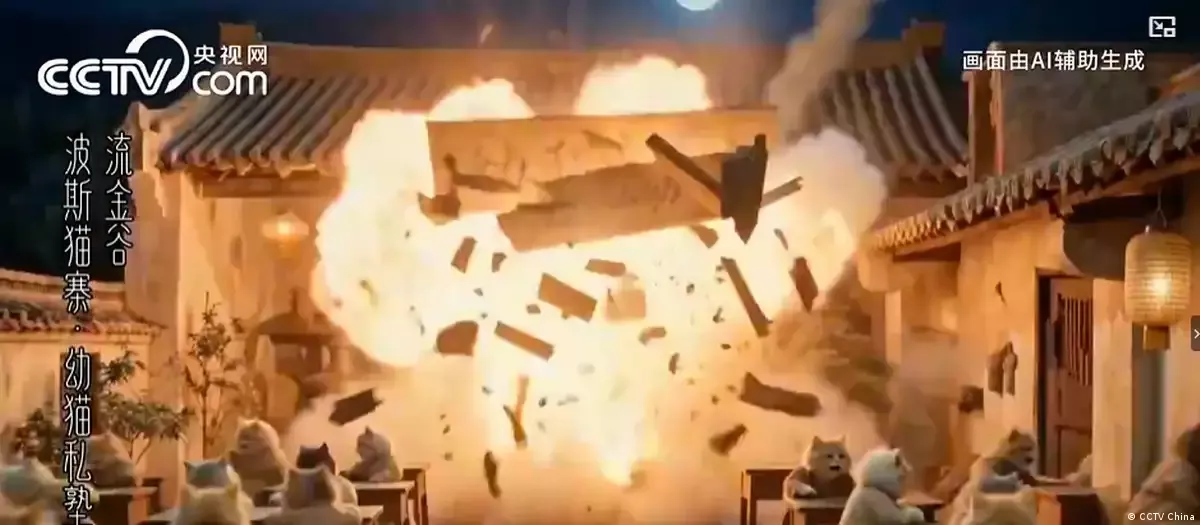 一部由官方媒体CCTV借助最新AI技术制作的动画视频,以苦大仇深的“波斯寨”一族(代表伊朗)向傲慢的“白鹰盟”(代表美国)寻求复仇为主线,讲述了一个《流金谷恩仇录》的故事。