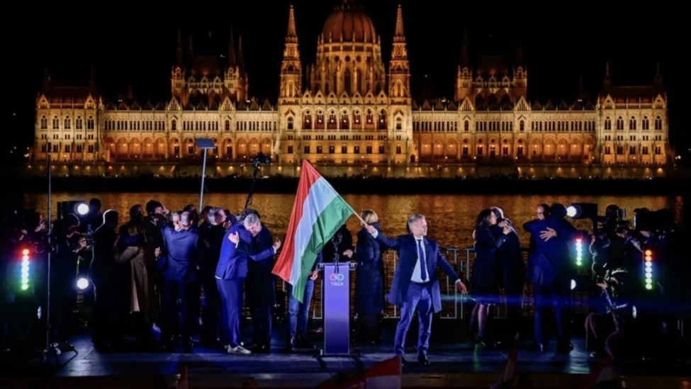 ▲周日,毛焦尔·彼得领导的蒂萨党赢得匈牙利大选。