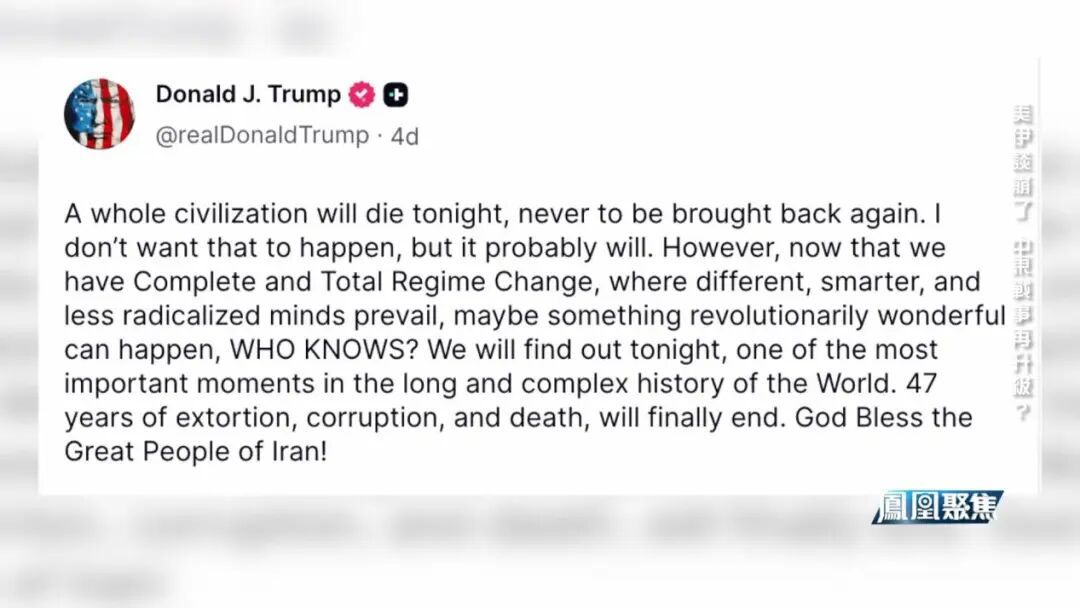 谈判前夕,美国总统特朗普在社交平台上频频发出威胁:“一个完整的文明将死于今晚,永不复返”,若不满足条件,他将把伊朗“送回石器时代”,他还要求伊朗必须无条件全面开放霍尔木兹海峡,并设定了24小时为最后期限。一时间,美国将对伊朗动用“核打击”的言论甚嚣尘上。