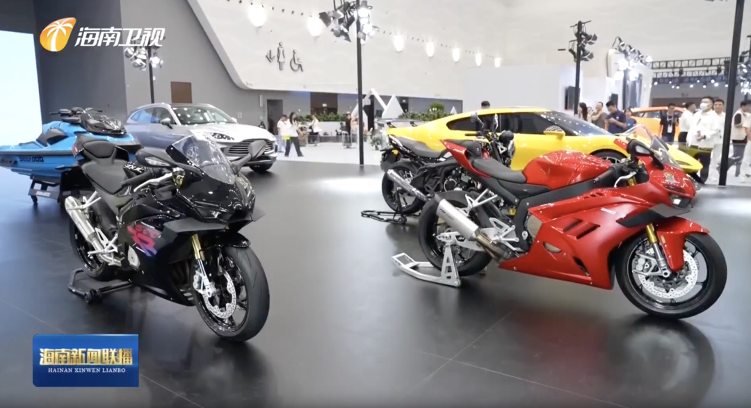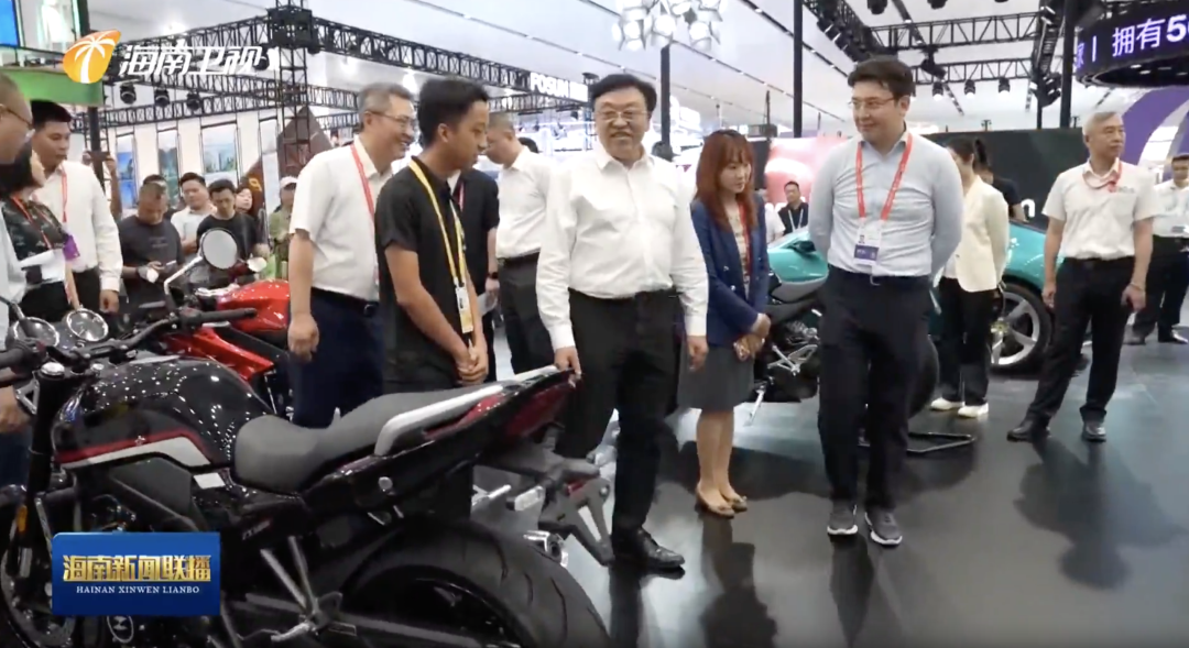 冯飞前往的多个展位中,张雪机车是首次参加消博会的品牌。