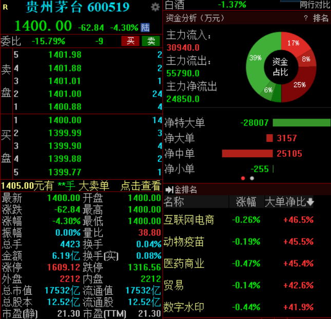 贵州茅台盘初跌超4%,此前发布2025年年度报告,上市至今首现年度营收、净利下滑。