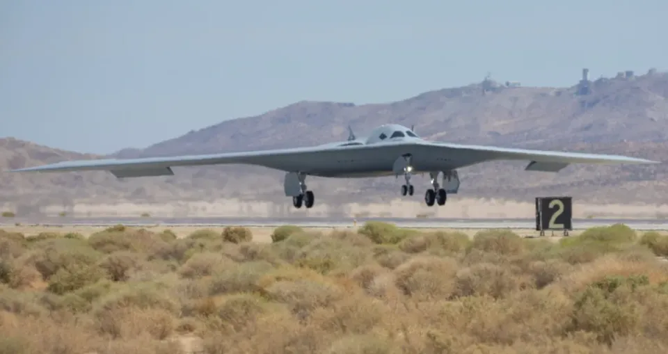B-21"突袭者"在飞行测试中展示其优雅的飞翼布局;