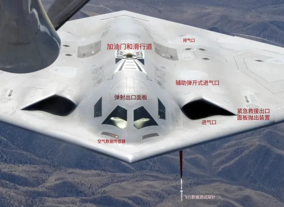2026年3月,美国空军公布了一张极具价值的照片——从KC-135空中加油机视角俯瞰B-21"突袭者"进行空中加油测试。这张照片为我们提供了观察这款神秘轰炸机的全新视角。