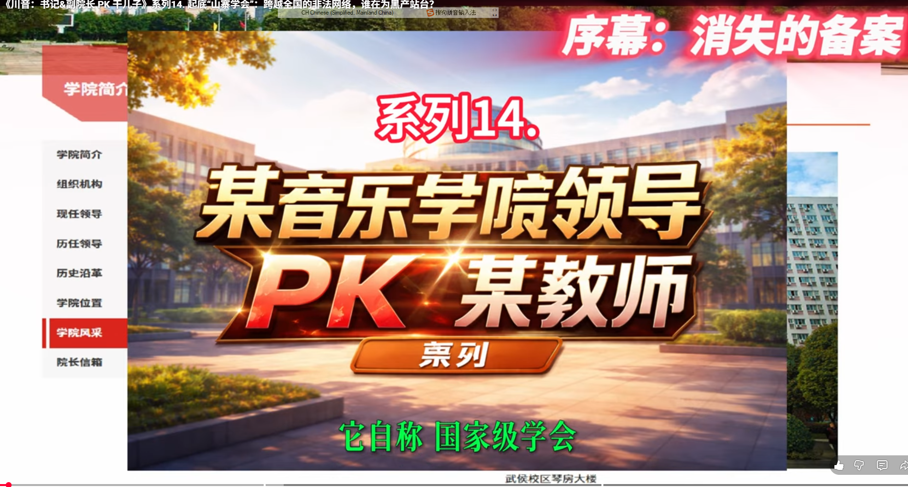 由舅舅操盘、干儿子实施的“山寨学会”被起底。干儿子利用川音讲师身份,包装出“莫斯科师范大学特聘专家”、“俄罗斯国际大赛第一名”等虚假头衔,在全国招摇撞骗。 他们在各省设立分会,拉拢多地教授、演员形成非法利益网。在川音,柴书记与情妇提供深度庇护,利用公权为该组织“非法落地”背书。面对连年举报,干儿子竟能靠着注水光环和权力防弹衣,在全国收割学子血汗钱。 当“大师”沦为敛财马甲,谁在坐地分赃?下集预告:起底千万黑金流向!敬请关注!