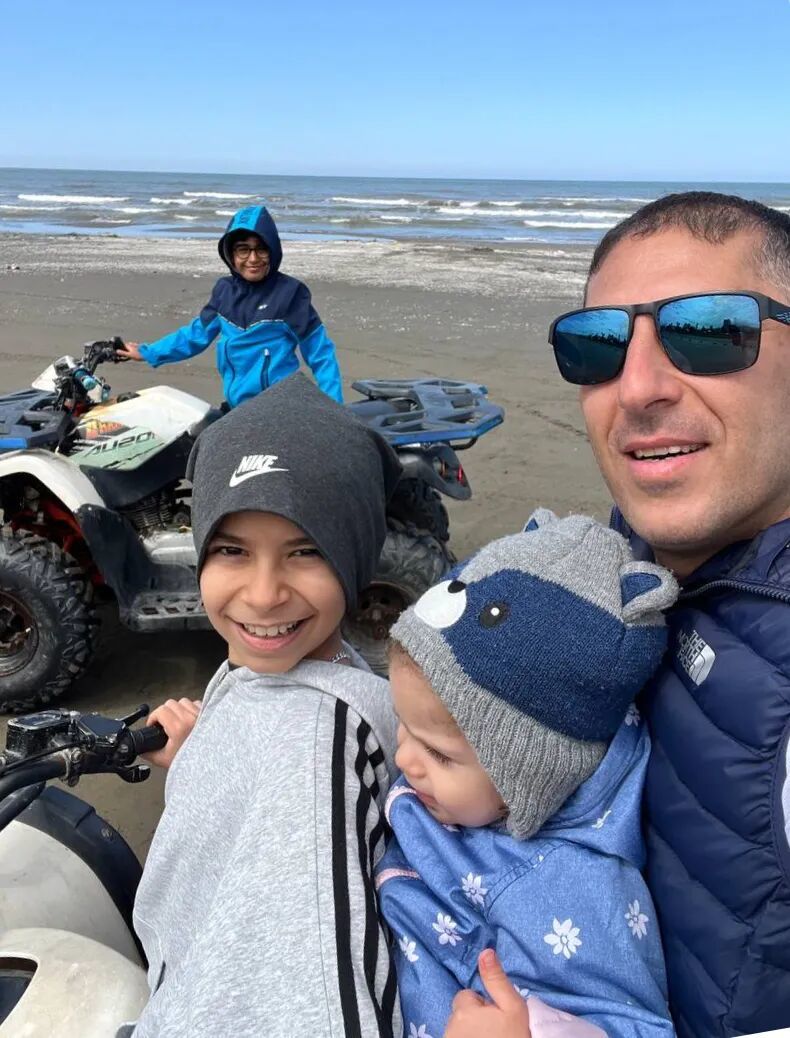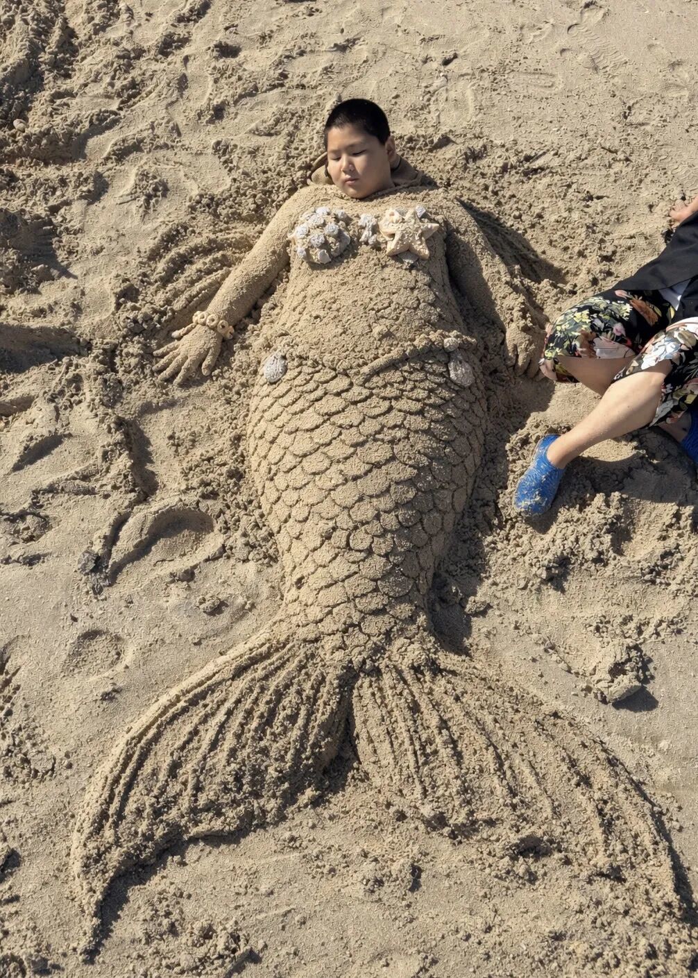 穆森一早发来了他们和朋友带着孩子在北部里海边玩的照片。看起来那边也很冷,孩子们都穿着外套。可看到孩子们在海边看海、玩岸上的泥沙,我心里还是不由得有些恍惚。