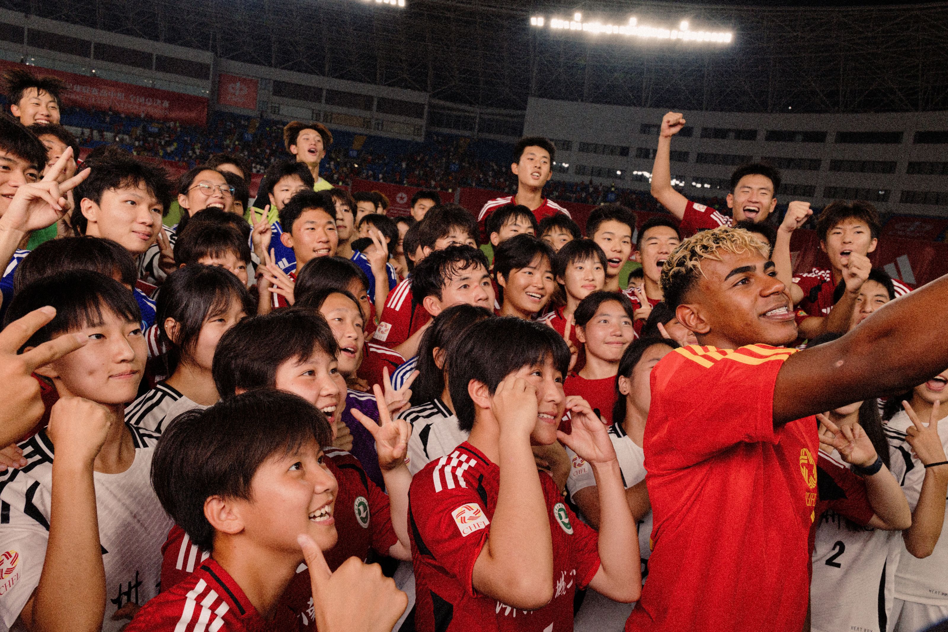 倾力支持中国年轻运动力量的成长与体育人才队伍建设,阿迪达斯对全国青少年校园足球联赛(CHFL)的支持便是最好的范例。CHFL是中国历史最悠久、影响力最广的校园足球赛事,在阿迪达斯的支持下,“天才球员”拉明·亚马尔空降2024-2025赛季决赛,和高中生球员们,以及现场逾万名观众,共同留下了一段关于青春、勇气与信念的热血回忆。